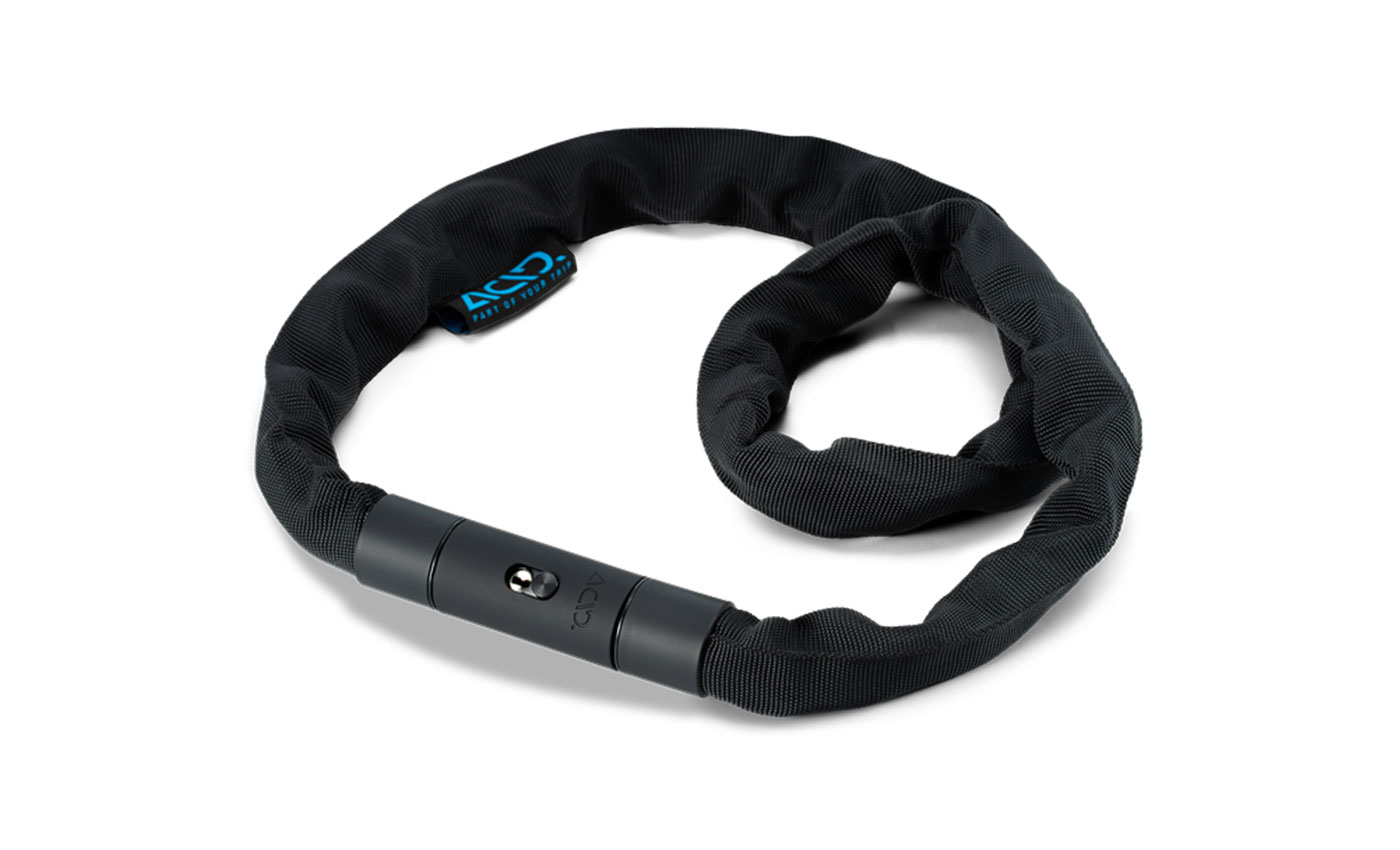 Die Kette besteht aus gehärtetem Stahl und der Schließzylinder aus hochwertigem Metall. Die Ummantelung ist aus robustem Textil.